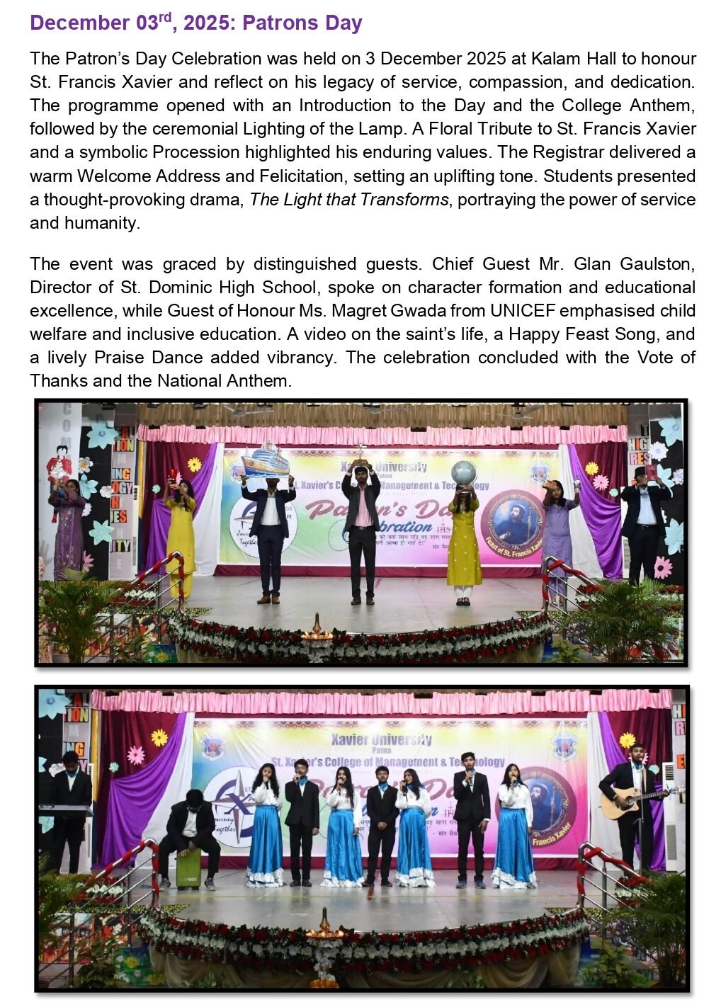 Education in the words of W.B. Yeats, “is not the filling of a bucket but the lightening of the fire”. Yes, education is about igniting change within; forming men and women who would have the strength of character, the moral fibre, and the courage of conviction to stand for what is right and just. It is about enabling people with voice and choice.